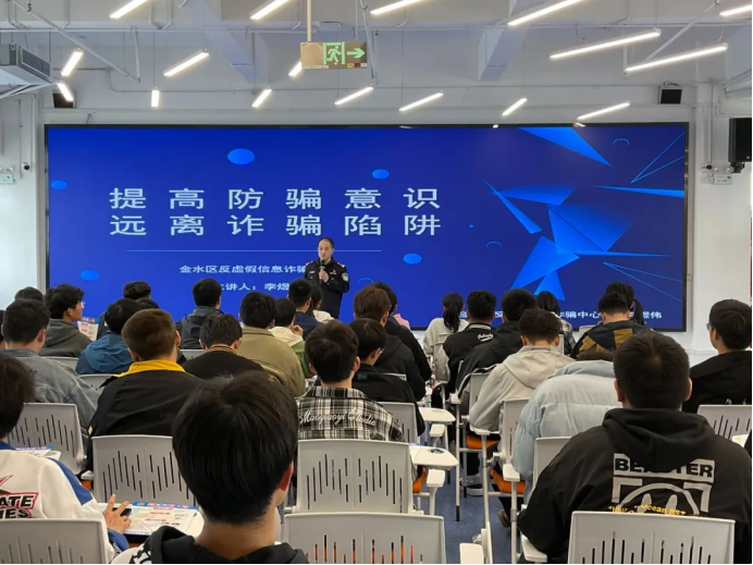 为增强广大学生对网络诈骗的防范意识,切实提高学生的自我保护、自我应对能力,保障学生的财产安全,我校数字技术产业学院近期组织开展预防网络诈骗宣传教育活动,开展讲座旨在提高学生对常见诈骗手法的知晓率和普及率,从思想上筑牢反诈骗意识。3月24日下午,我校邀请郑州市公安局金水分局反虚假信息诈骗中心的工作人员来校,通过讲座的方式对全校师生进行了以“提高防骗意识,远离诈骗陷阱”为主题的防诈骗知识讲座。