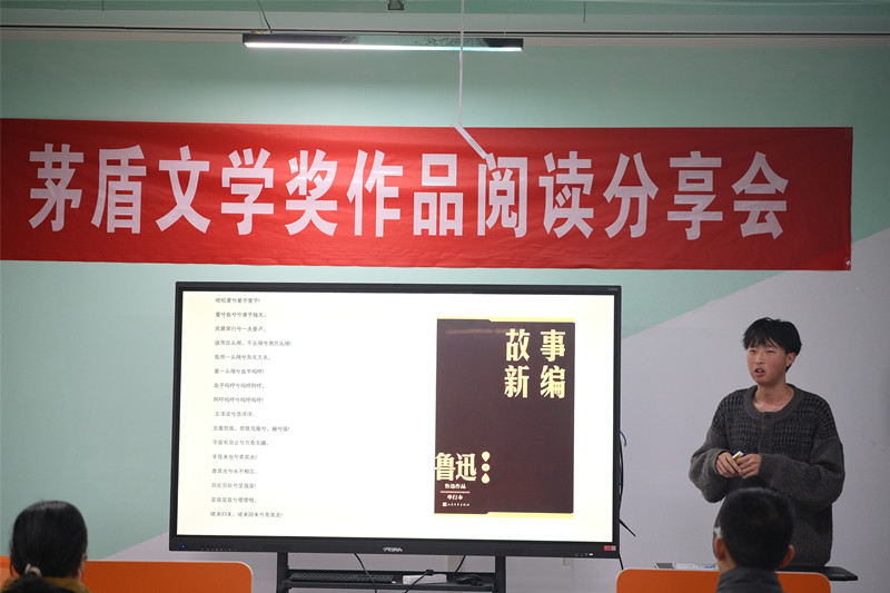 图书馆赵喜凤老师分享了陈忠实的《白鹿原》,生动展现白鹿两家的恩怨情仇,深厚的文化底蕴和时代内涵令同学们沉浸其中。致远住宿书院郭汉祖同学带领大家走进鲁迅的《铸剑》,独特的侠义与悲壮情怀让同学们领略到别样的文学风格,感受文学世界的多元魅力。寰宇住宿书院岳春鸽同学分享了乔叶的《宝水》,作品如清泉滋润心灵,展现了乡村振兴中的温暖与变迁,带领大家领略乡土中国的发展与温情。最后,博艺住宿书院易睿同学分享了王安忆《长恨歌》,细腻描绘大时代下的爱情悲剧,展现人性的光辉与无奈,他的分享让同学们仿佛穿越时空,感受跨越岁月的情感。每一部茅盾文学奖获奖作品都是文学的高峰,是时代、历史与人性的映照。分享团成员通过分享这些优秀作品,给在座同学带来许多启发与思考。
