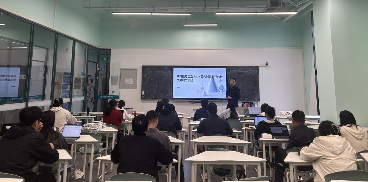 之后,李主任带来“从英语句型到 Java 面向对象编程的哲学关联与实践”分享。他从跨学科角度,挖掘英语句型结构与 Java 面向对象编程思想的哲学联系。比如,英语句型主谓宾结构与 Java 类、对象、方法存在逻辑相通性。通过这种关联,能帮助学生更好理解 Java 面向对象编程核心概念,降低学习难度。