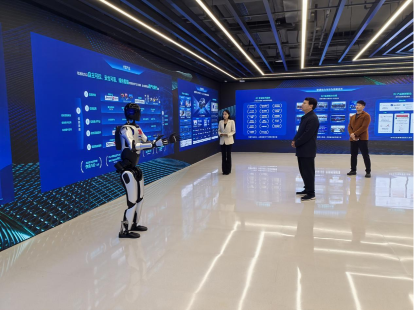 在软通动力领导的陪同下,副校长一行先后参观了企业数字化展厅、技术研发中心、员工办公区及人才培养基地。通过实地走访和沉浸式体验,详细了解了软通动力在数字经济、人工智能、云计算、大数据等领域的核心技术、业务布局及行业领先成果,近距离感受了企业现代化的管理模式、创新的企业文化和浓厚的技术研发氛围。展厅内,生动的案例演示、前沿的技术应用场景,让大家对数字产业的发展趋势和人才需求有了更直观、深刻的认识。