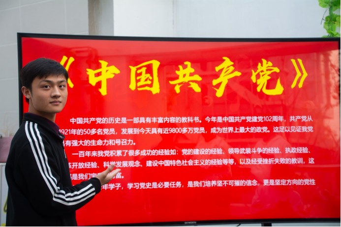 2023年11月8日,我院十号社区在三单元露台开展了第一期“数字青年.网络思政”走向团支部微课学习。本次“网络思政”走向团支部活动,通过线上和线下相结合方式,节选四个篇章进行学习宣讲,从土地革命、抗日战争、解放战争和改革开放。社区学生认真领会积极主动,纷纷报名参与宣讲。