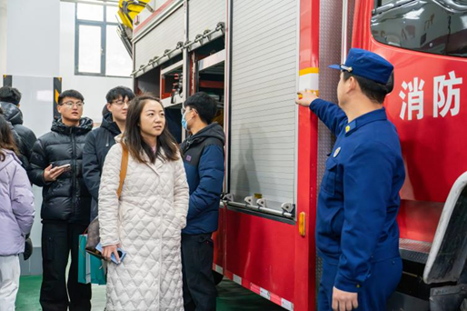 为深入贯彻习近平新时代中国特色社会主义思想和党的二十大精神,加强大学生的理想信念教育,切实发挥师生在实践中的作用,同时为进一步提高我院青年大学生的消防意识和自救能力,加深师生对消防队的认识和了解,数字技术产业学院师生共同走进二七区消防救援大队,进行了一次实地参观和亲身模拟体验。12月27日,数字技术产业学院学生中心主任党玉瑶带领部门师生共22余人到郑州市二七区消防救援大队实地参与社会实践活动。二七区消防中队战斗班班长李坤桐亲切的给我们进行讲解。