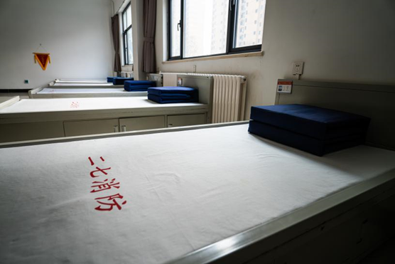 随后,同学们跟着李班长参观了队员们日常居住的宿舍。消防救援人员的宿舍干净整洁,同学们零距离的观看了消防队员们的被褥叠放,一个个正方形的被子像砖一样平整,这就是他们的日常,同学们表示惊讶的同时更多的是赞叹和学习决心。不少同学们纷纷拿出手机拍照表示这也“太酷了”。