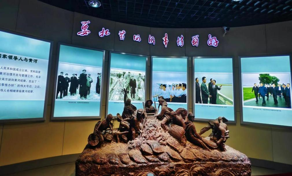 踏入序厅,一幅巨幅壶口瀑布图映入眼帘,展现了黄河之水汹涌奔腾的磅礴气势。黄河博物馆分为流域地理、民族摇篮、千秋治河、治河新篇、和谐之路等五个展区。