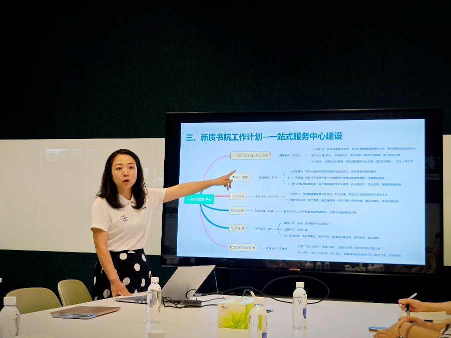 为帮助书院成员更优地理解管理制度创新,党玉瑶书记介绍了西交利物浦大学创新育人模式、太仓校区创业家学院模式等。在一站式学生服务中心建设的分享中着重介绍了中心建设的意义、我院一站式空间布局以及重点建设内容。在书院工作计划中党玉瑶书记还强调了要进一步深化我院心理咨询中心的内涵建设及书院室内外环境育人板块的建设。