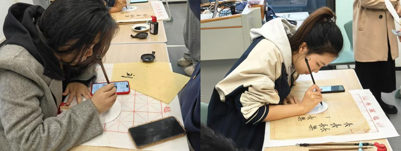 活动现场,邀请张伊婷、李宛奕两位学生进行题字。
