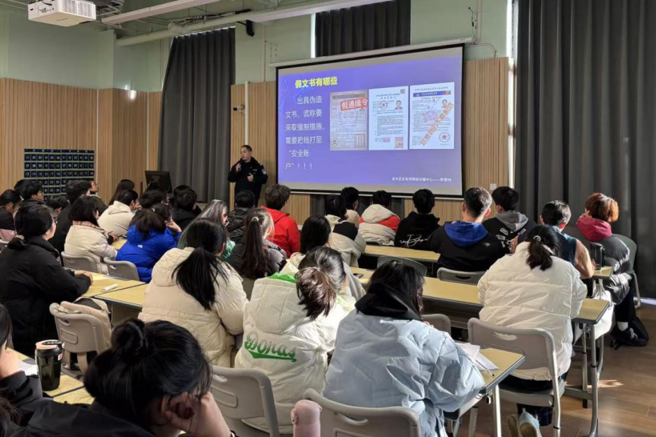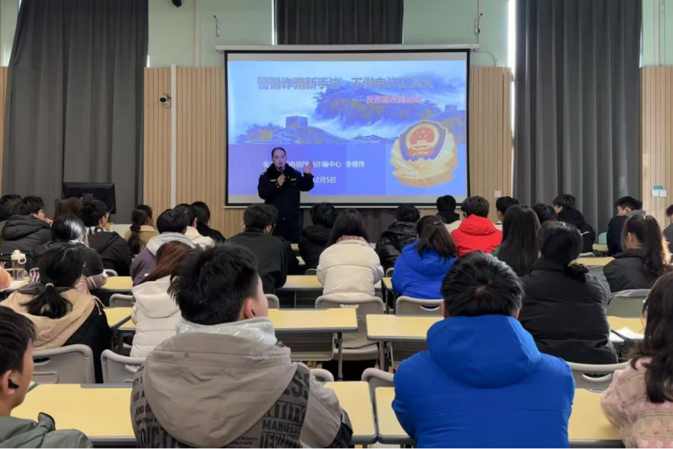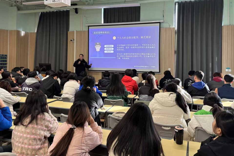 讲座伊始,李警官直切主题,深入剖析了现实生活中常见的电信诈骗手段,从刷单陷阱到虚假中奖信息,从冒充公检法诈骗到网络交友骗局……一个个投机倒把的诈骗手段在我们眼前生动展示,也让我们深刻意识到了其中的危害。