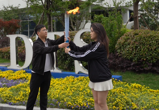 4月24日,我校春季运动会火炬从郑州西亚斯学院新郑校区出发,到达郑州校区新质住宿书院火炬接力传递现场。