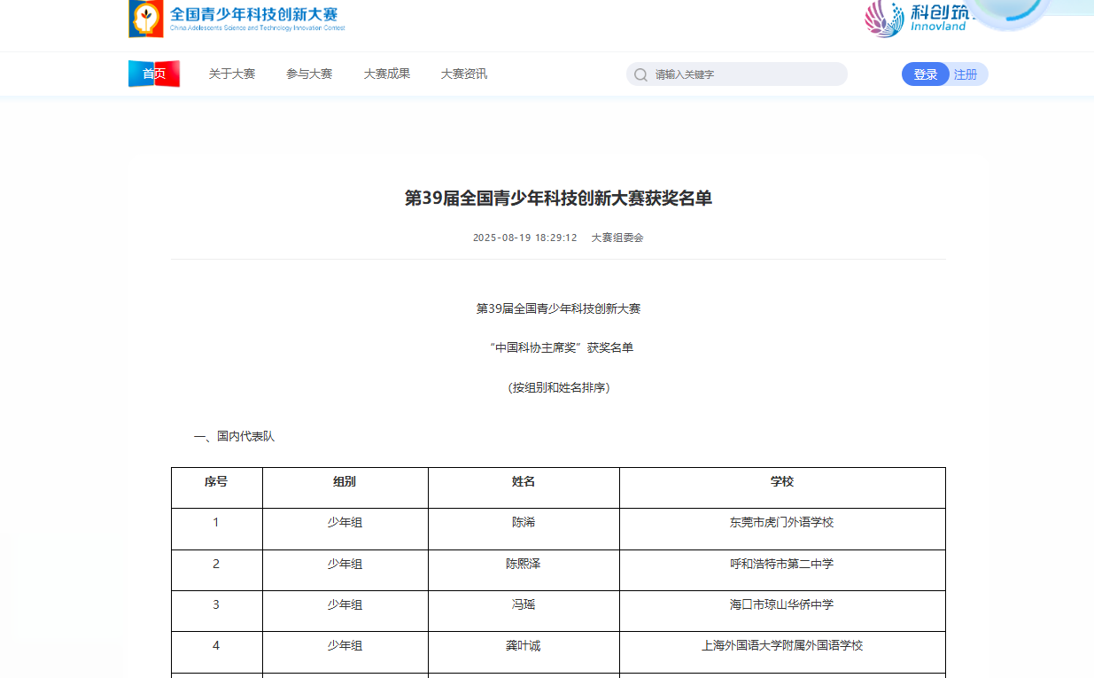 2025年8月19日,由中国科协、国家自然科学基金委员会、共青团中央、全国妇联、内蒙古自治区人民政府共同主办的第39届全国青少年科技创新大赛在呼和浩特圆满落下帷幕。我院22级大数据专业学生马毅豪凭借出色表现,荣获大赛“青少年成长支持计划”双选会单项奖,这一成绩不仅是学子个人的荣耀,更标志着我校在学科竞赛领域实现新突破,彰显了良好的育人和人才培养成效。