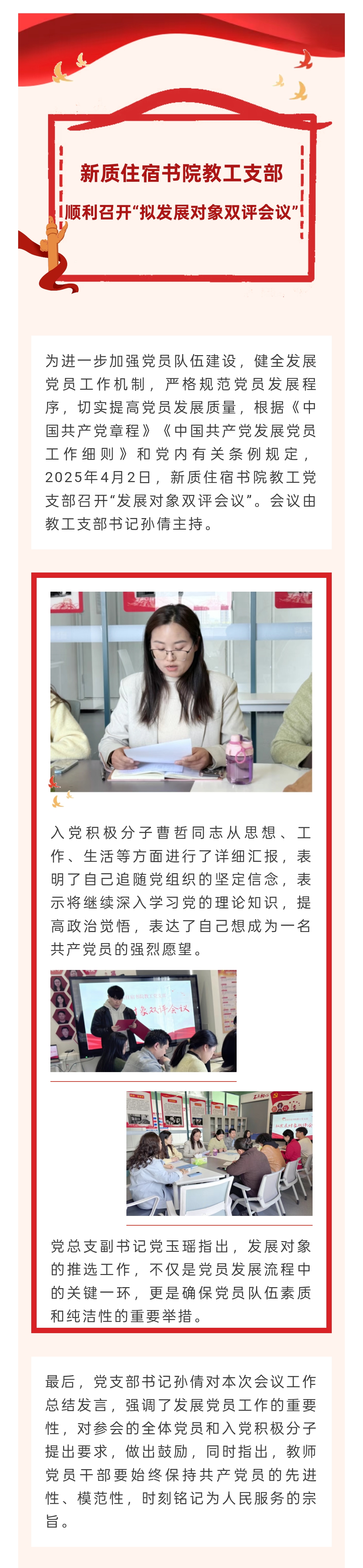 新质党建丨新质住宿书院教工党支部顺利召开“拟发展对象双评会议”
