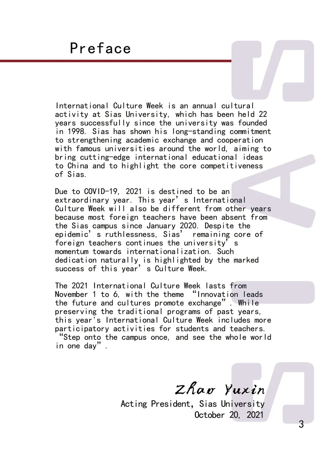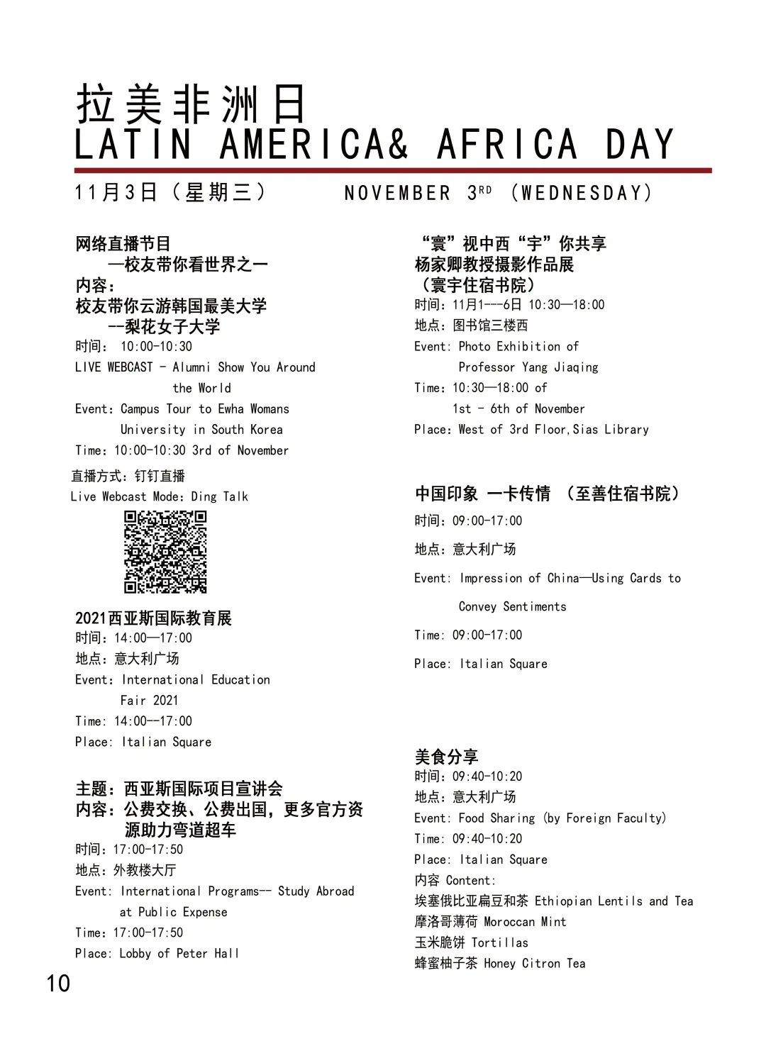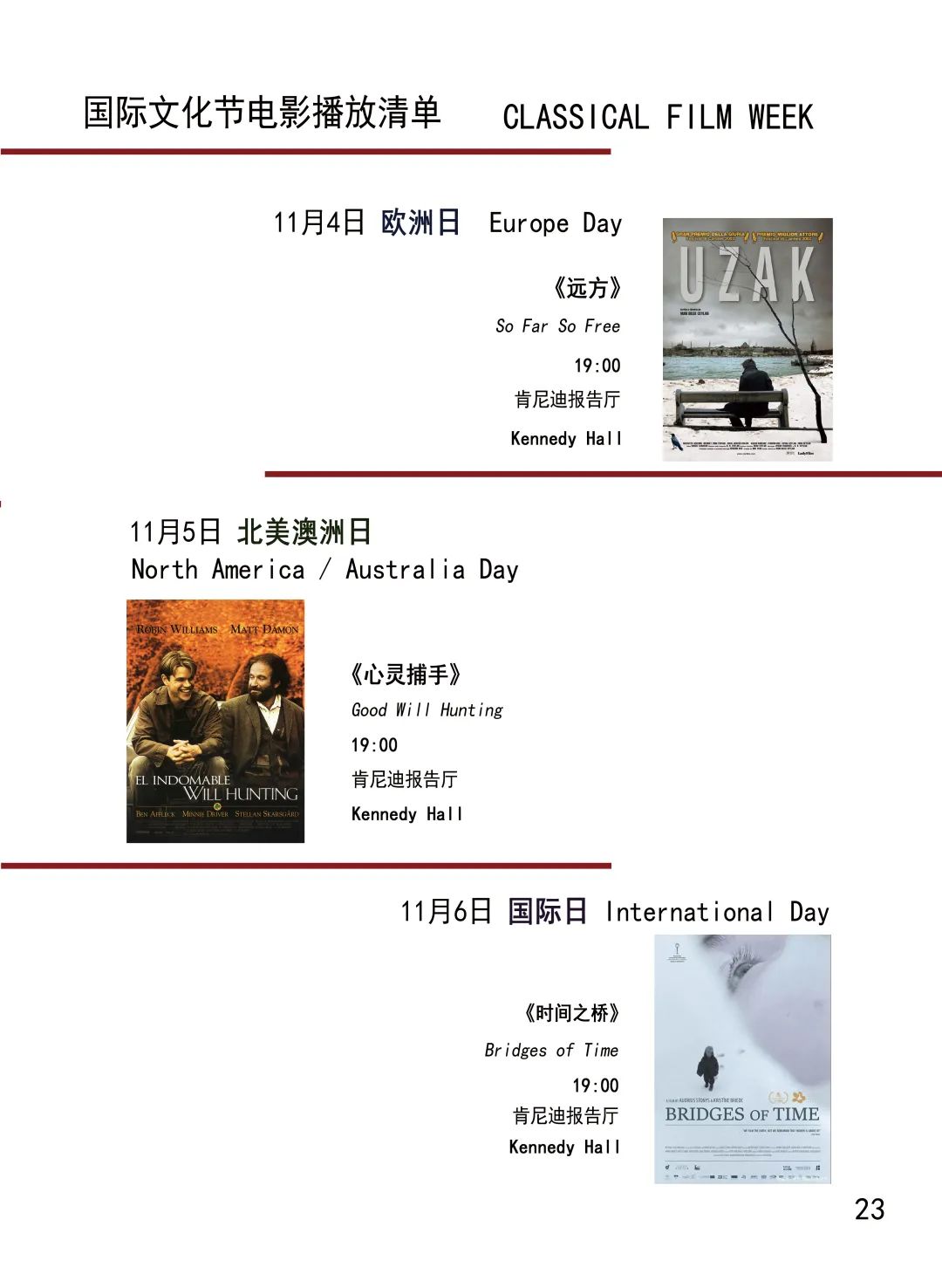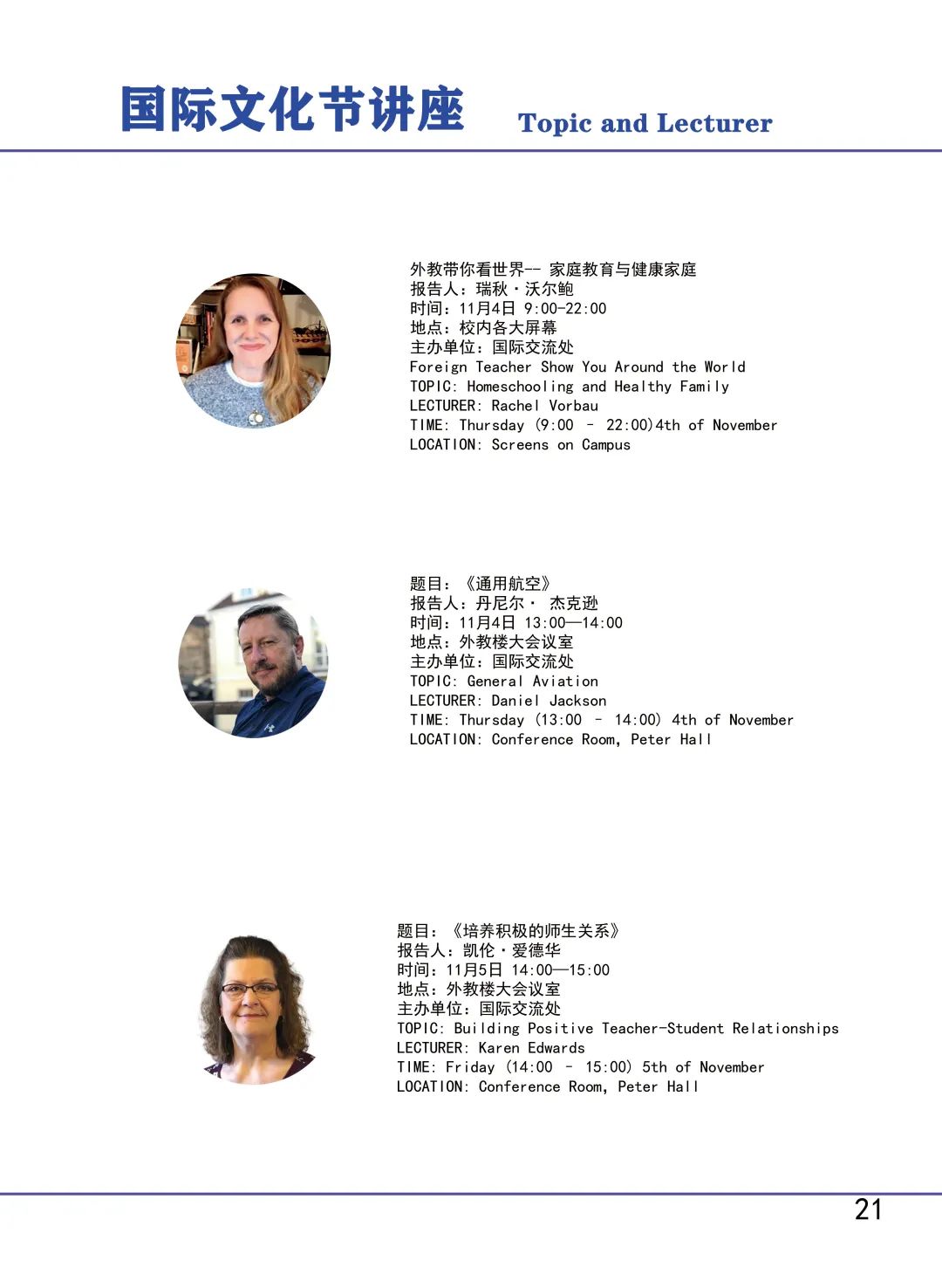 今年,第23届国际文化节从11月1日开始,持续到11月6日,主题为“创新引领未来,文化促进交流”,我们在延续以往传统经典节目的基础上,继续推出一些创新节目,让师生“一朝入校园,一日游世界”。
