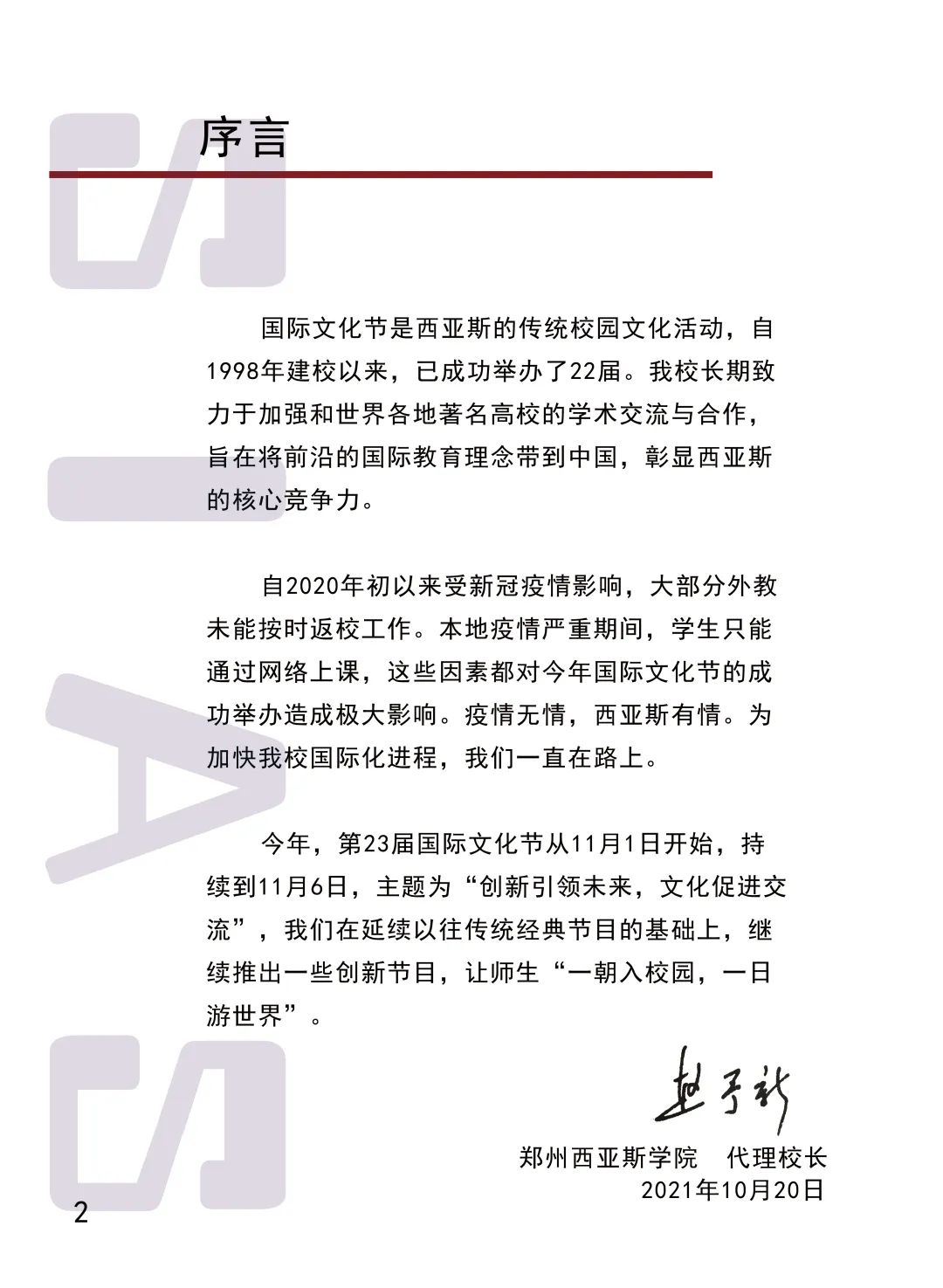 作为一所中西合璧的国际化大学,郑州西亚斯学院历来重视对学生的人文教育,鼓励学生参与感受东西方文化的融合,提升学生的综合素质、培养创新精神。我校长期致力于建立与世界各地高校的学术交流与合作,旨在将国际教育价值和教育理念带到中国,从而搭建起一座中外相互了解的桥梁。由于秉承独特的教育模式,我校已经成为河南省响亮的教育品牌,成为国内发展速度最快的高校之一。