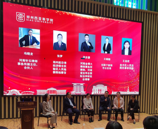 主旨演讲开始前,院长王龙天代表法学院致辞,他首先对郑州西亚斯学院法学院优秀校友在百忙之中到校参加论坛表示热烈的欢迎和衷心的感谢,对毕业学子长期以来关心、关注、支持法学院发展和建设表示诚挚的感谢,并表示,法学院将永远作为毕业学子回归母校的温馨家庭和坚强后盾,并预祝本次论坛取得圆满成功!基础法学与法律实务教研室主任郭杰等学院老师,依次做代表发言,对毕业学子回归母校表示由衷的欢迎。