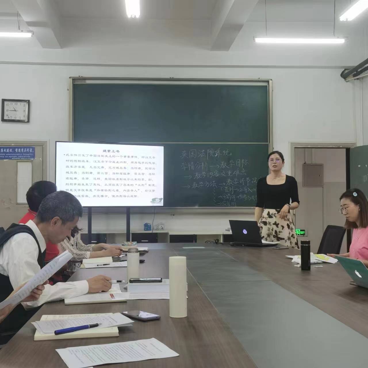 本次说课会由李莹莹、杜玥圆、高辛明子、刘汶、汤皓月五位老师依次进行为时30分钟的说课,王龙天、郭杰、吴慧娟、刘慧、王伟、高玉侠、王素娟等评委老师,分别对几位青年教师的说课进行提问、点评。最后王龙天院长对几位老师的说课水平给予高度肯定,希望各位老师再接再厉,不断学习进步,积极申报科研项目、改进教学方法,提高课堂教学质量,争取成为一名优秀教师。