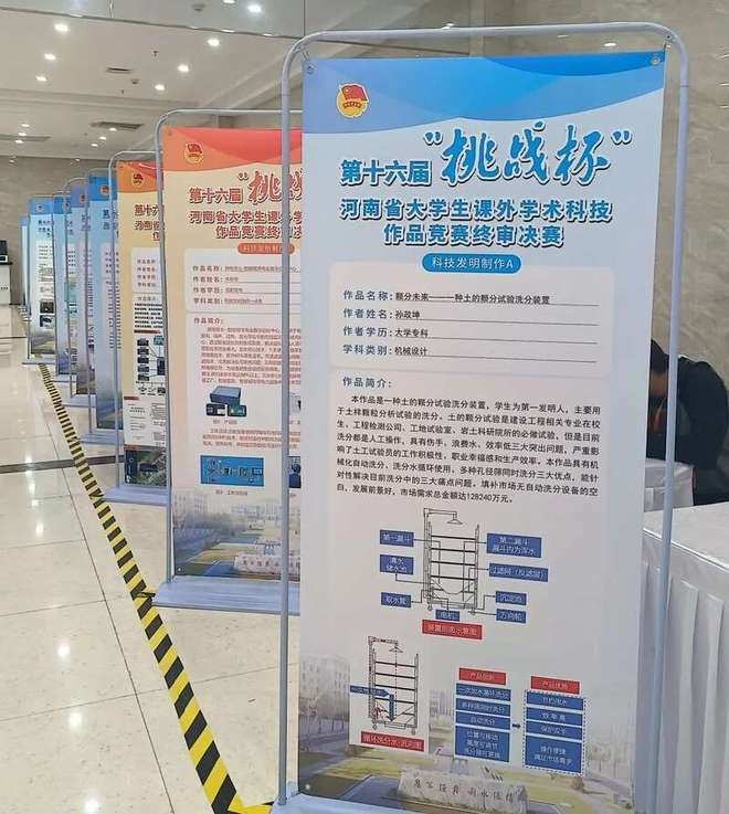 2023年5月10日至14日,由共青团河南省委、河南省教育厅、河南省社会科学院等单位联合主办,华北水利水电大学承办的第十六届“挑战杯”河南省大学生课外学术科技作品竞赛终审决赛在华北水利水电大学龙子湖校区举行,来自全省86所高校526件作品参加决赛,我院两项作品进入省赛决赛,一项作品晋级终审决赛环节。