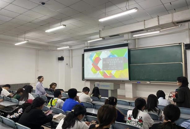 随后,刘翔宇同学现场分享了她在英语学习、四六级考试及研究生考试中的经验,以不同视角分别阐释在各种考试中英语学习的技巧、方向与方法,讲座现场气氛轻松、效果良好。杨柳迪同学则主要针对出国留学过程中雅思考试的准备流程、学习方法畅谈了英语学习的心态、技巧与持之以恒的学习经验。向家音同和李梦瑶同学由于已经进入工作实习状态未能现场进行研讨,但是她们贴心地录制了分享视频以及用文字的方式给学弟学妹们介绍了英语学习在学习规划和职业规划中的作用,并倾情分享了很多实用的英语学习小锦囊,同学们受益良多。