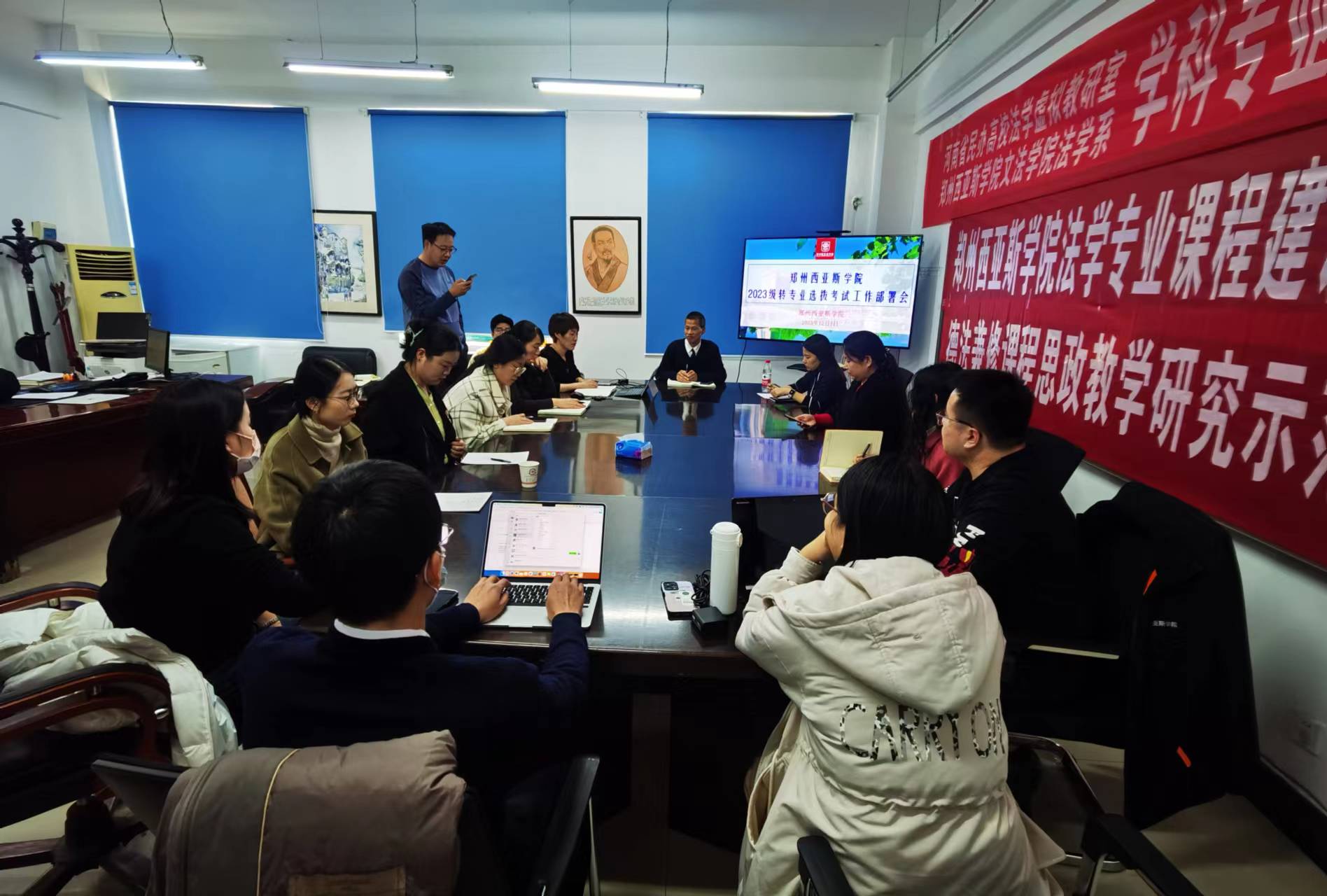 本次考试活动对于申请转入文法学院法学专业和汉语言文学专业的学生至关重要,直接关系到能否顺利进入教务处审核环节。针对今年申请法学专业和汉语言文学专业学生比较多、转专业意愿强烈、全校师生高度关注的情况,文法学院积极主动向学校领导汇报转入文法学院学生情况以及组织测试进展情况。为了组织好本次考试,教务处、监察审计处等派出专门人员现场指导。在12月7日考试当天下午,所有监督指导与考务人员集中在13-311会议室进行了考前动员部署会议,明确了以法学系主任高玉侠、汉语言文学系主任杨晓莉等7人组成的命题组开始集中封闭命题组卷;以汉语言文学系副主任魏晨为组长的考场布置组8名成员从预定考场、打印考生名单、张贴考场分布图、组织考生核对身份等进行了细致的安排;以文法学院办公室主任吴飞为组长的保障组给考务工作准备了笔、纸、胶带、茶水等;以教务处肖鑫、监察审计处孙方坦等人员组成的监督指导组成员,不仅严格履行监督指导职责,而且根据考生数量多还要保证考场隔位的要求,监督指导组郑楠等和前期的命题组、保障组、考务组所有老师一同,主动承担监考任务,确保了考试工作顺利进行。(文法学院办公室 文/图)