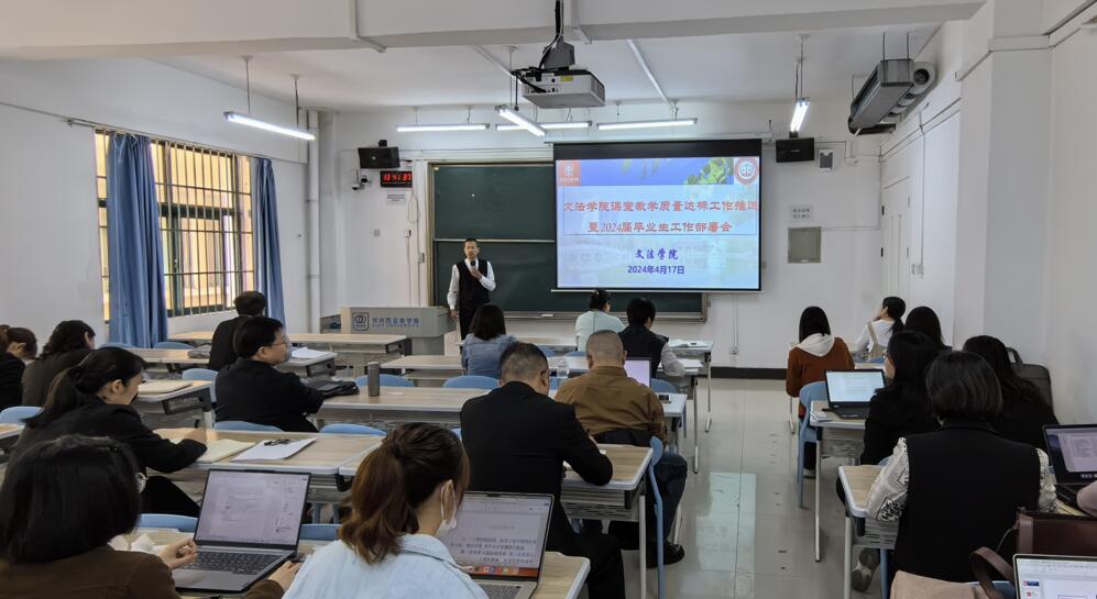为了深入推进学校组织的专兼任教师课堂教学质量达标创优活动走深走实,安排部署毕业生相关工作,文法学院于2024年4月17日在13-207教室组织召开了全员教职工大会,文法学院院长王龙天、党总支副书记杨雅涵及全体教职工参加了本次会议。本次会议前组织召开了党建和师德师风建设工作会,杨雅涵副书记宣读了党纪学习教育工作方案,带领全体与会人员重温了教师职业道德规定,强调了以高质量党建和师德师风建设迎接本科教学合格评估的重要性。