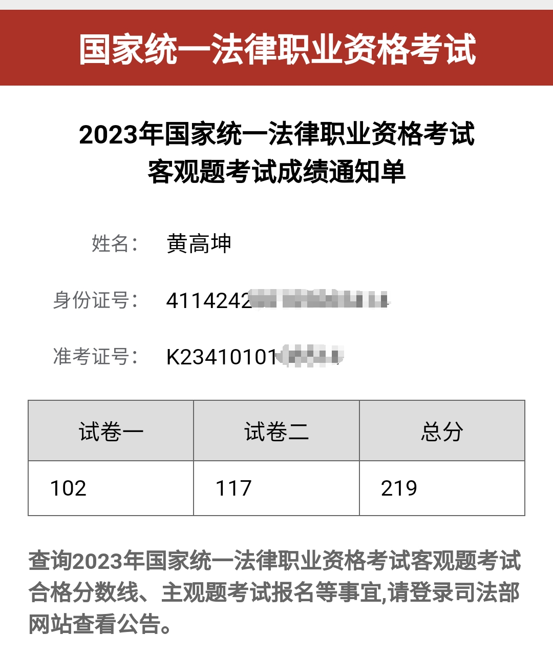 通过大家的不懈努力,本次法律职业资格考试成绩再创历史新高,客观题200分以上的有20人,较2022年增加了11人;主观题115分以上的学生达15人。同时,2020级法学1班黄高坤同学取得客观题219分,2020级法学2班胡阳同学取得主观题129分的优异成绩,分别获得我院本次考试主、客观考试的第一。