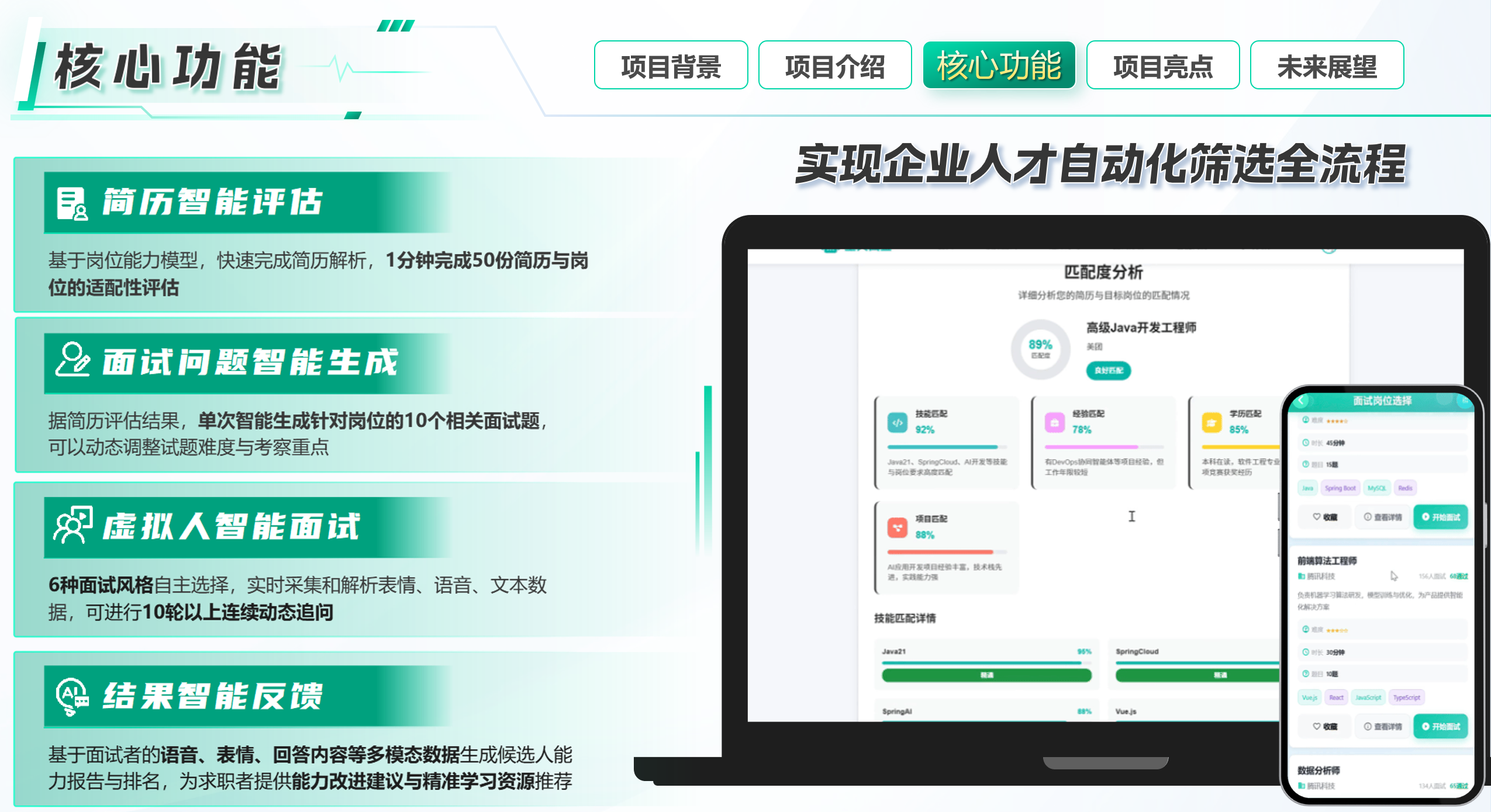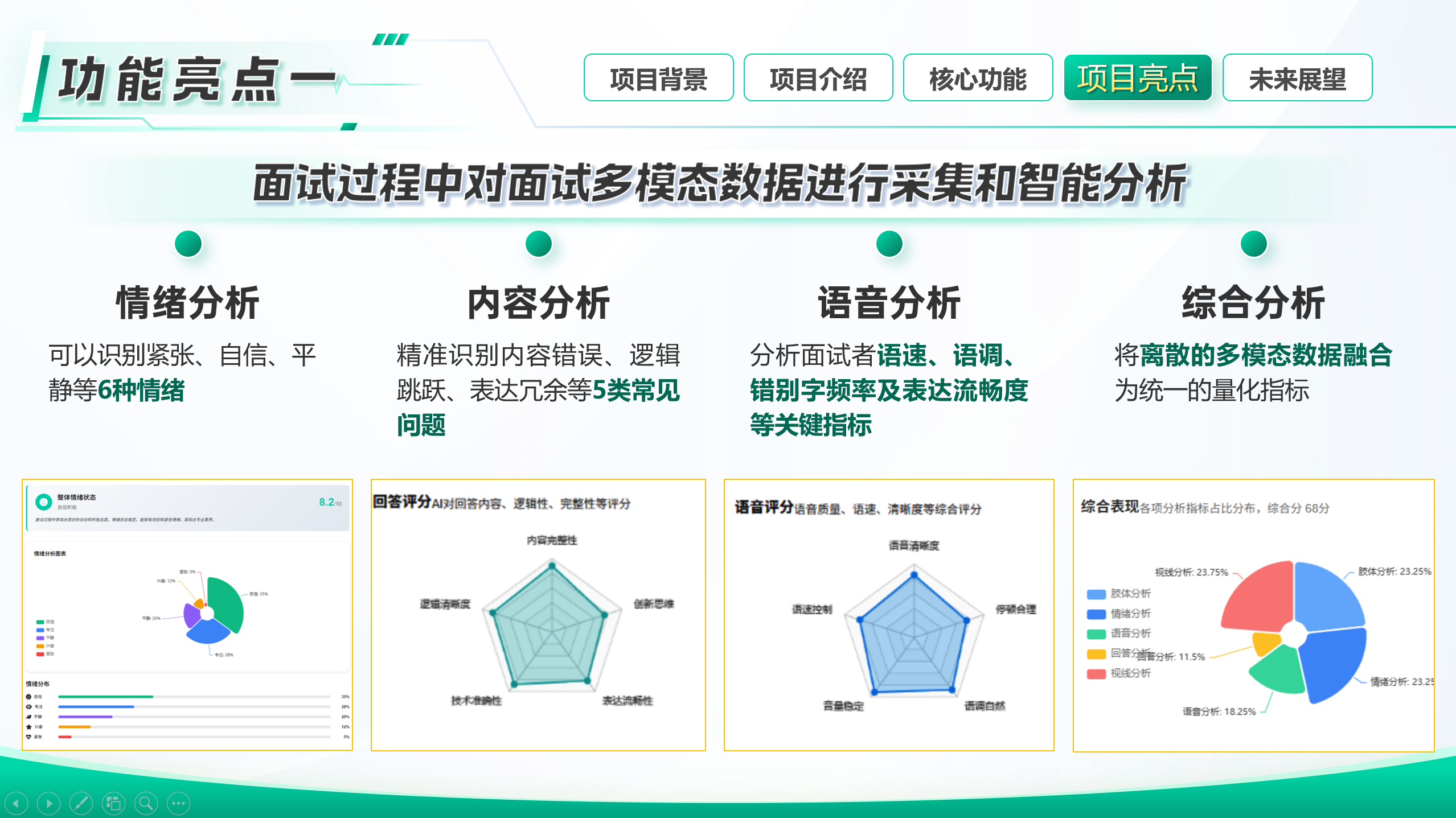 系统整合语音、文本、视频等多维度数据,实现对求职者情绪、行为、回答内容等的全面分析。