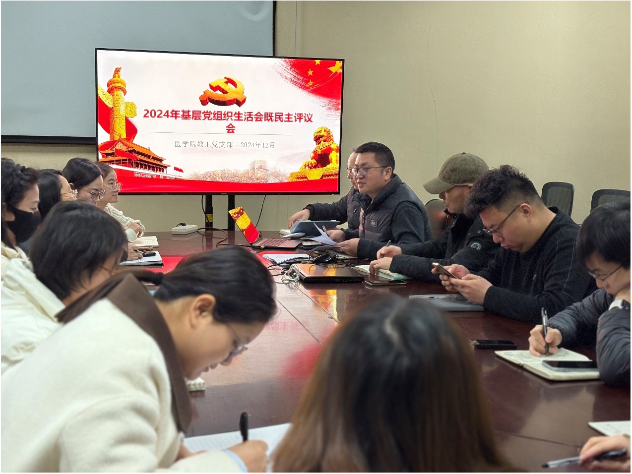 为进一步加强基层党组织建设,提高教工党员素质,增强基层党组织的凝聚力和战斗力,根据学校党委的统一部署和要求,12月30日,医学院教工党支部在哈蒙德楼229会议室召开2024年基层党组织组织生活会暨民主评议党员会议。本次会议由医学院教工党支部书记曹迎东主持,学院全体党员参会。