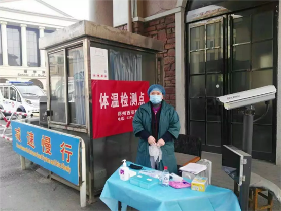 门诊部通过线上的方式组织全体员工学习疫情防控知识,提高疫情防控意识及疫情警觉度。自疫情开始,门诊部便安排专人坚守在疫情防控的第一线:在学校东门口设置防疫体温检查站、在门诊部设置疫情医学观察区、认真做好校园值班及留守人员的体温筛查工作、协助采购防疫物资等。