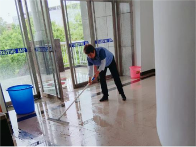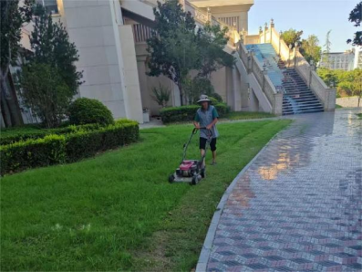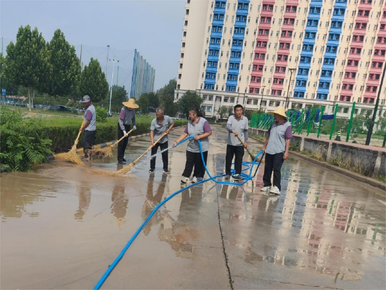 后勤保障暑期不歇、全“勤”服务。工作人员按计划推进车棚清洁、地面冲洗、路沿除草、高空除尘、垃圾桶及点位冲洗、绿化带落叶清吹、公共卫生间精细化清洁、公共区域消杀、玻璃专项清洁、楼道清洁、垃圾清运、道路清扫及水系打捞等各项保洁任务。