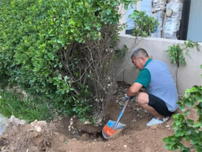 夏日高温下,校园花卉绿植更需悉心照料。随着日头升高,地表温度飙升,绿化养护工作有序进行,包括草坪修剪、移苗补苗、杂草清理、绿篱修剪、病虫害防治打药、乔灌木修剪及浇水养护等。这些工作保障了暑期校园环境的整洁卫生与绿化景观的正常维护。