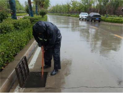 为确保校园汛期安全,根据学校工作安排,后勤服务中心积极组织人员对校园排水系统进行全面巡查,关注雨情汛情变化,并提前清理下水道杂物和淤泥,保障排水通道通畅;在易积水区域堆放沙袋,为应对强降雨做好了充分准备;提前对校园树枝进行修剪、为苗木打支撑,降低树枝折断和树木倾倒等安全隐患发生的概率,保障师生安全。