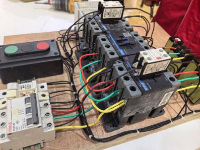 实操现场更是精彩纷呈——水工们专注进行卫生间排水管道安装,接口密封、坡度校准步步严谨;电工们凝神聚力,娴熟完成双电机(M1、M2)时序控制与互锁电气原理图连接,线路排布规整有序;防水工则严格遵循规范,有条不紊完成SBS防水卷材铺贴,筑牢防护屏障;泥瓦工专注于水磨石盖板制作及打磨,从配料到抛光一气呵成,成品平整光亮;木工师傅们匠心雕琢明式罗锅枨画案,榫卯拼接、打磨抛光尽显传统工艺魅力。