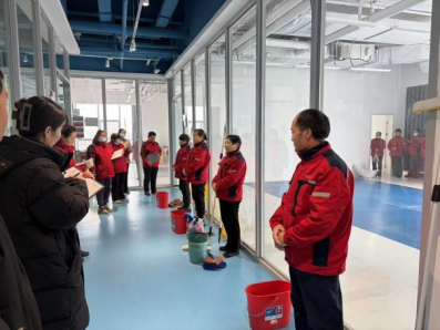 物业服务部两大板块同步竞技,用细节诠释专业。环境部实操现场,选手们聚焦玻璃清洁与卫生间厕格保洁,手持工具麻利操作,无论是玻璃表面的顽固水渍,还是卫生间的卫生死角,都被逐一攻克,最终呈现出“无痕迹、无污迹、无异味”的高标准效果。