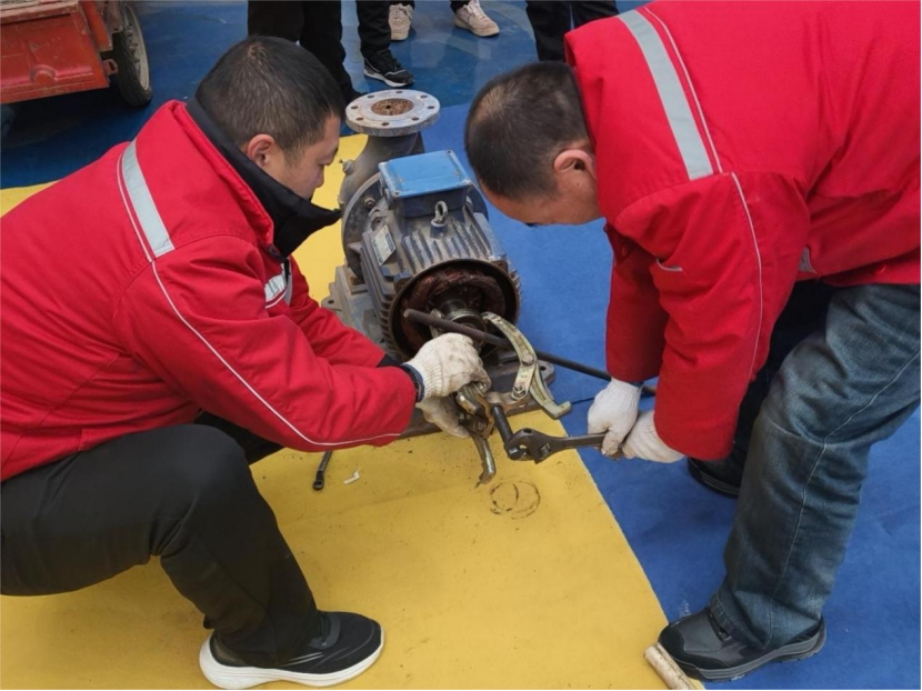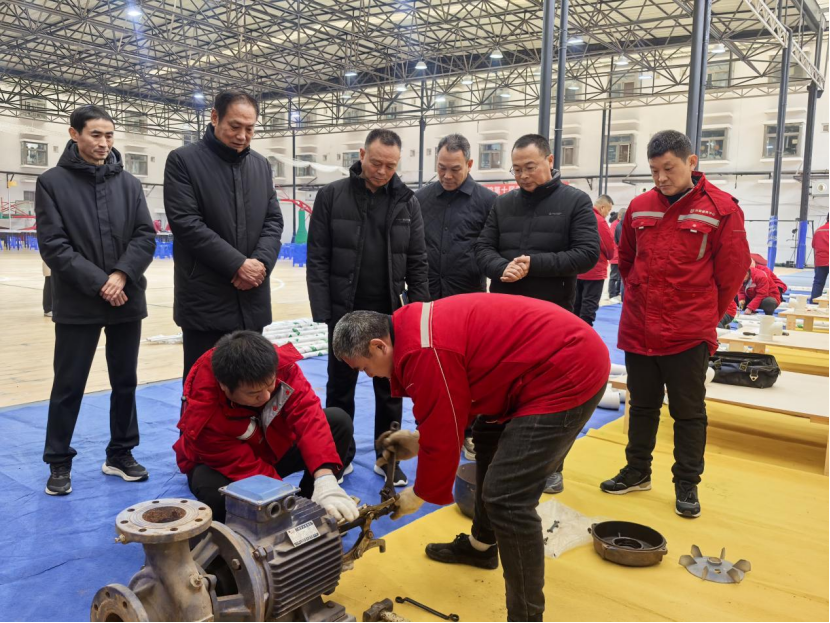 实操环节聚焦水泵拆装及更换机械密封,参赛选手两人一组默契配合,拆卸旧密封时小心翼翼防损伤,安装新部件时精准对位保密封,每一步操作都严格遵循安全规程,充分展现了扎实的实操功底和高效的应急响应能力。