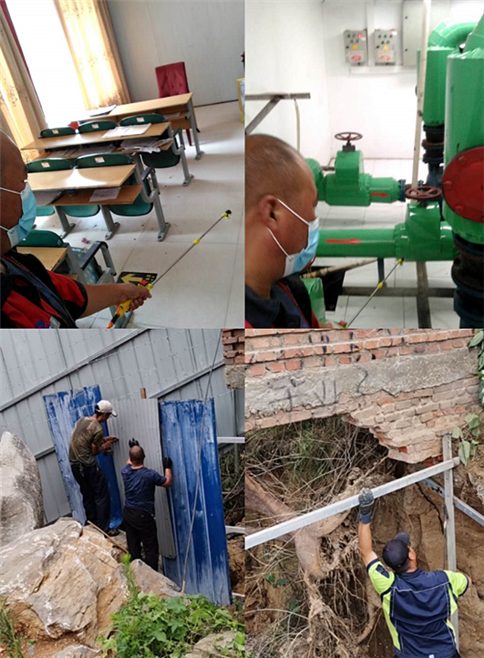 物业服务中心对物业中心项目服务部、室内服务部进行了消毒喷洒;对西区2#楼南侧生活用水蓄水池供水设备、西区11楼东侧生活用水蓄水池供水设备进行了消毒喷洒;对行政楼东侧化粪池进行了消毒喷洒。维修学校北侧铁皮瓦围挡1处、东侧铁丝网围挡1处、西侧铁皮瓦围挡1处。校区垃圾场南侧安装铁皮瓦围挡6米,校区西侧安装铁皮瓦围挡5米。