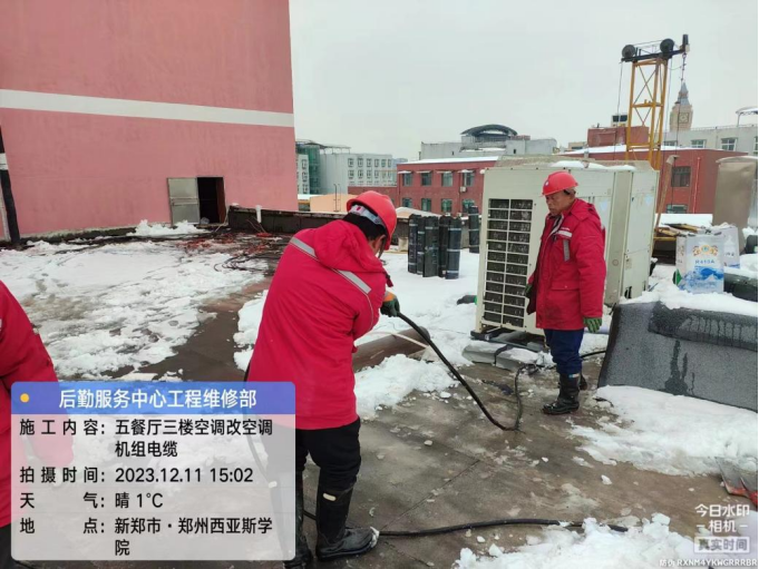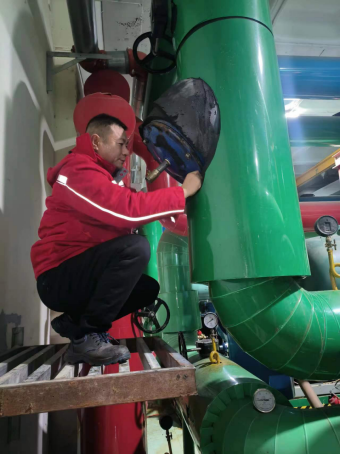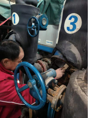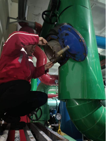 十七、由于雨雪天气导致气温过低,为确保学校广大师生空调供暖及热水正常供应,能源服务部安排值班人员加强对供暖设施巡检频次,根据设备运行供况,提高中水流量,同时对排查有问题的设施进行维修更换、清洗过滤器。