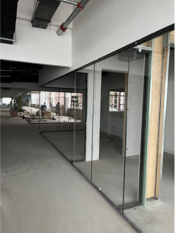 四、持续推进19号楼1-4层内装修,加快乳胶漆施工,3-4层玻璃隔断施工,1层室内地板砖铺贴。