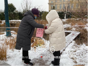一、开展校园扫雪除冰、撒融雪剂、铺设草垫、张贴温馨提示等工作,保障广大师生出行安全。