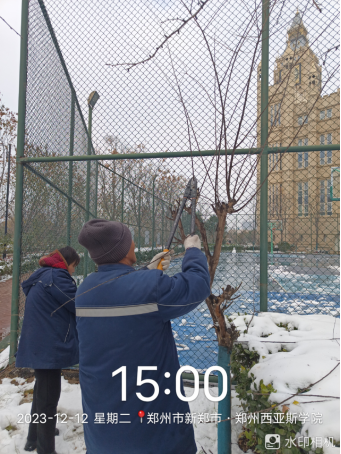 十二、对校园绿化进行树干防虫涂白、苗木越冬修剪、清理干枝断枝等工作。