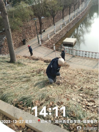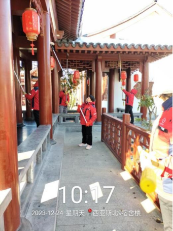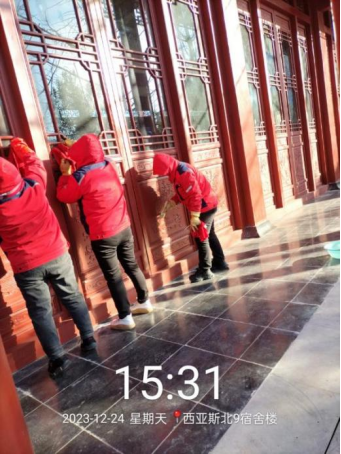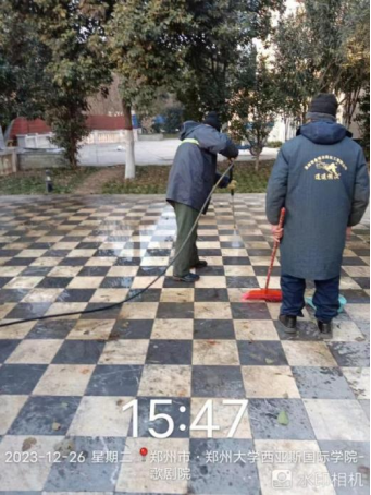 十、对校园环境进行对油污地面冲洗、防疫消杀以及深度保洁中国园等工作。