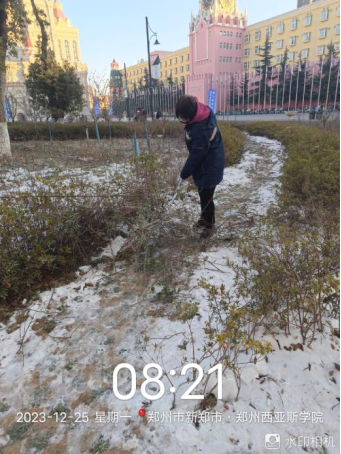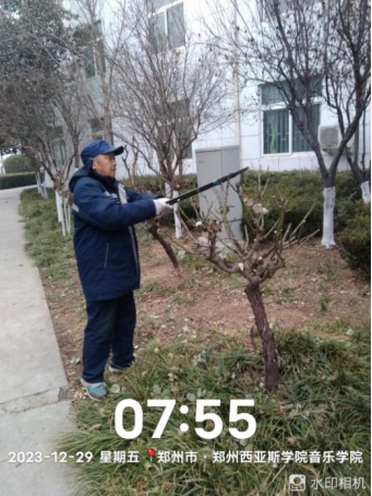 九、对校园绿化进行干枝断枝清理、落叶清理、苗木及绿篱越冬修剪、花房整理、花房培育营养钵、大棚扦插月季等工作。