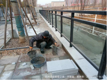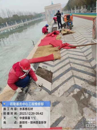 六、中央水系隧道内批腻子,石材铺装。