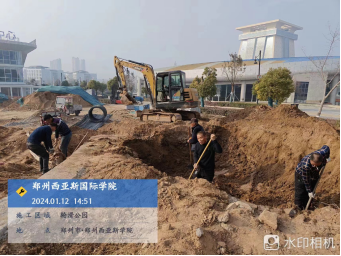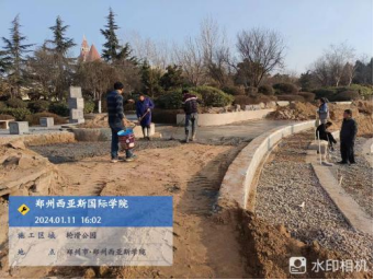 五、轮滑公园:挖大门基础,打石材铺装垫层,走线管。