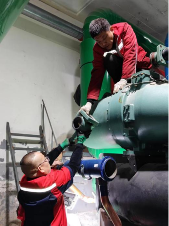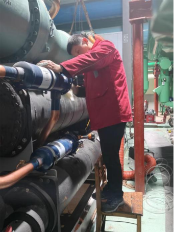 十八、为更好保障学校师生供暖及热水服务,能源服务部组织对新机房2#主机进行拆机维修。
