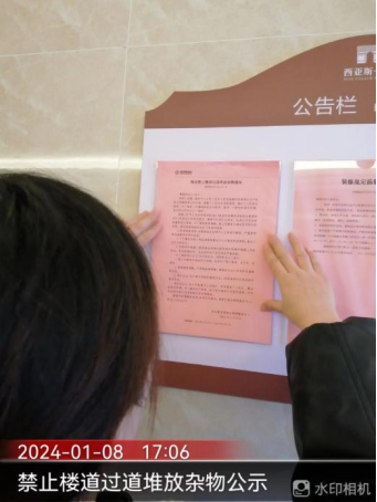 十七、宫馆项目开展地库截水沟篦子更换、地库车牌号悬挂、二次装修初验、空置房巡查、定期品质巡检、张贴单元禁止楼道过道堆放杂物公示、消火栓检修以及配合售楼部车位开盘签订协议等工作。