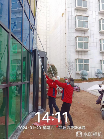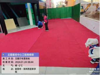 三、开展西亚斯新春联欢会卫生清洁、物品搬运、地毯铺设等相关保障工作。