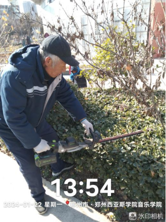 十三、对校园绿化进行绿篱修剪、苗木修剪、乔灌木修剪、落叶清理、干枝断枝清理、清理大棚杂草消除安全隐患等工作。