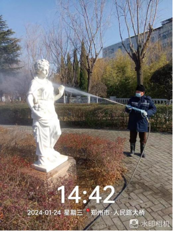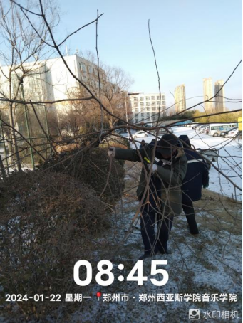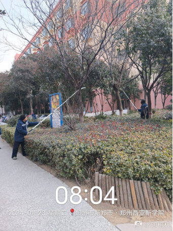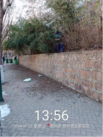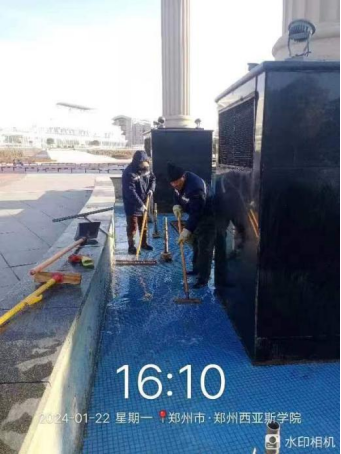 十四、对校园环境进行水系清洁、雕塑冲洗、绿化带清理、毛石挡墙落叶清理、除雪保障等工作。