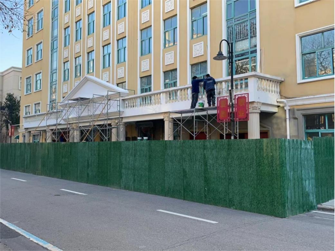 八、文法学院门头GRC构件安装完毕,开始刷漆及安装发光字。