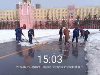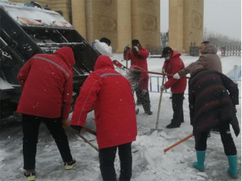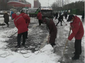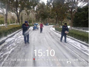 一、后勤服务中心全体工作人员开展撒盐、校园各重点区域以及出入口积雪清扫工作。