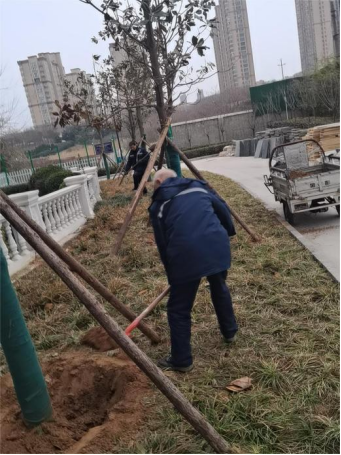 十二、对校园绿化进行草花栽种区域翻土施肥、干枝断枝清理等工作。