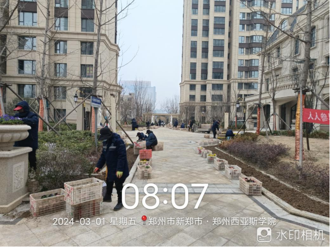 十九、宫馆项目开展居民配一户一表更换、生活水箱水质取样化验、每周定期品质巡检、抄录水表、园区栽种草花等工作。